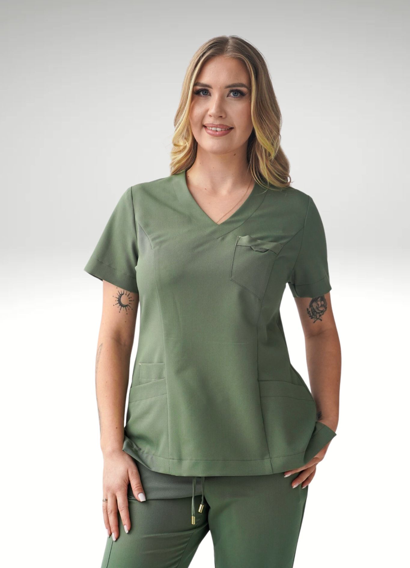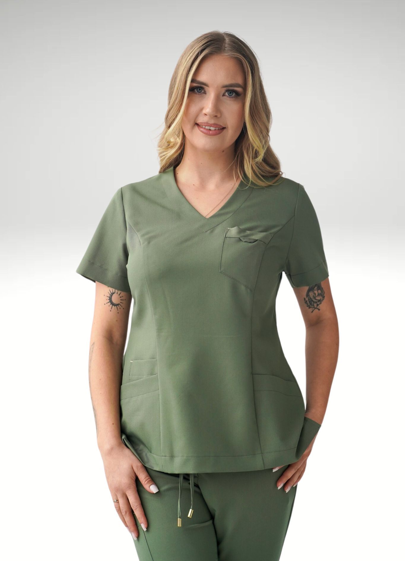 Wyjątkowy elastyczny scrubs. Mieszanka w poliestru, wiskozy i elastanu to niezwykle praktyczna i wyjątkowa tkanina, której nie będziesz chciała z siebie zdjąć :)