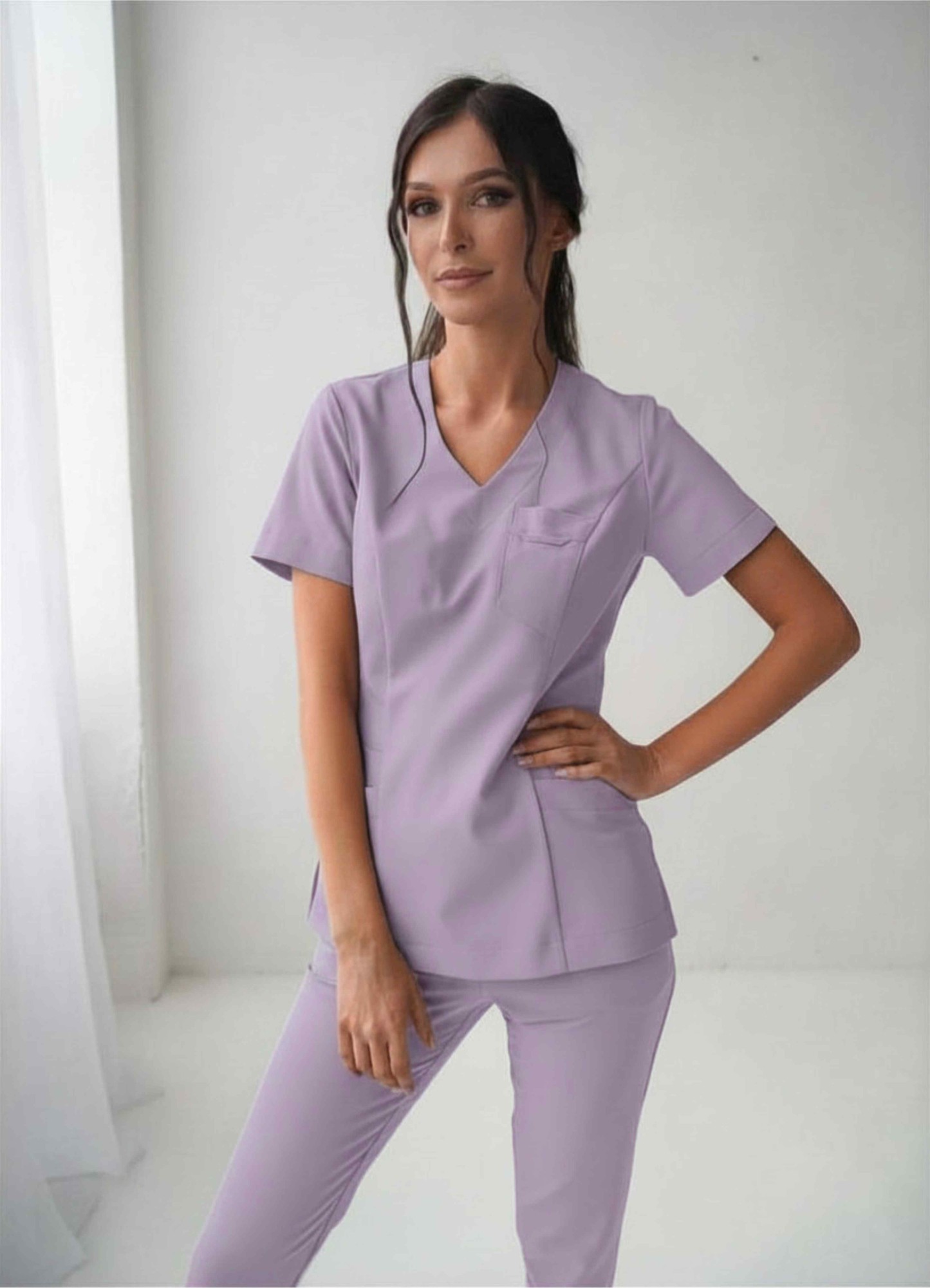 Wyjątkowy elastyczny scrubs. Mieszanka w poliestru, wiskozy i elastanu to niezwykle praktyczna i wyjątkowa tkanina, której nie będziesz chciała z siebie zdjąć :)