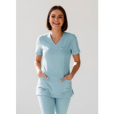 Wyjątkowy elastyczny scrubs. Mieszanka w poliestru, wiskozy i elastanu to niezwykle praktyczna i wyjątkowa tkanina, której nie będziesz chciała z siebie zdjąć :)