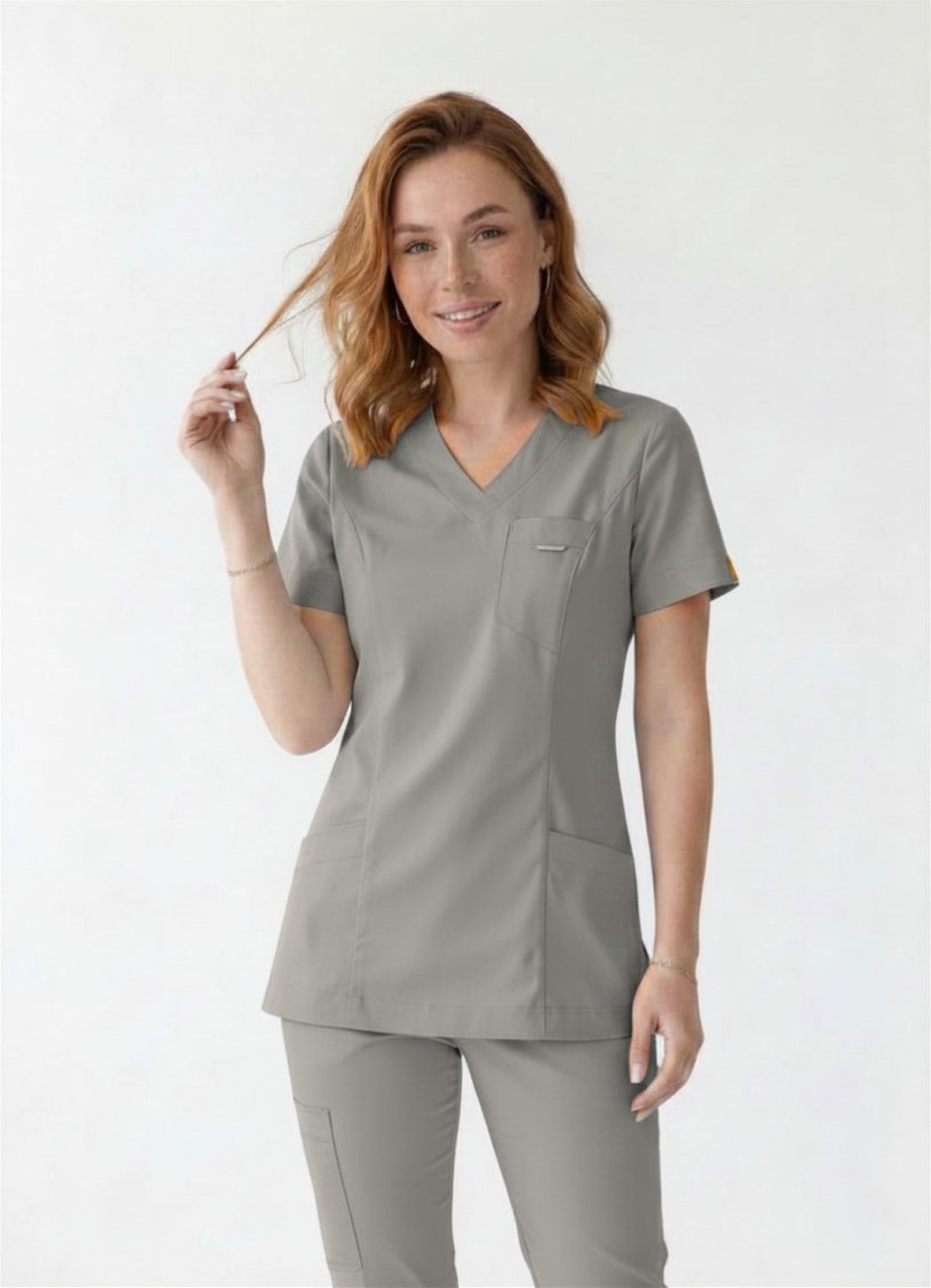 Wyjątkowy elastyczny scrubs. Mieszanka w poliestru, wiskozy i elastanu to niezwykle praktyczna i wyjątkowa tkanina, której nie będziesz chciała z siebie zdjąć :)