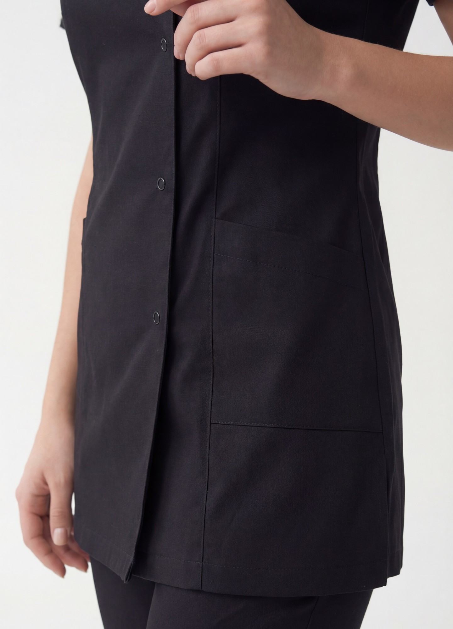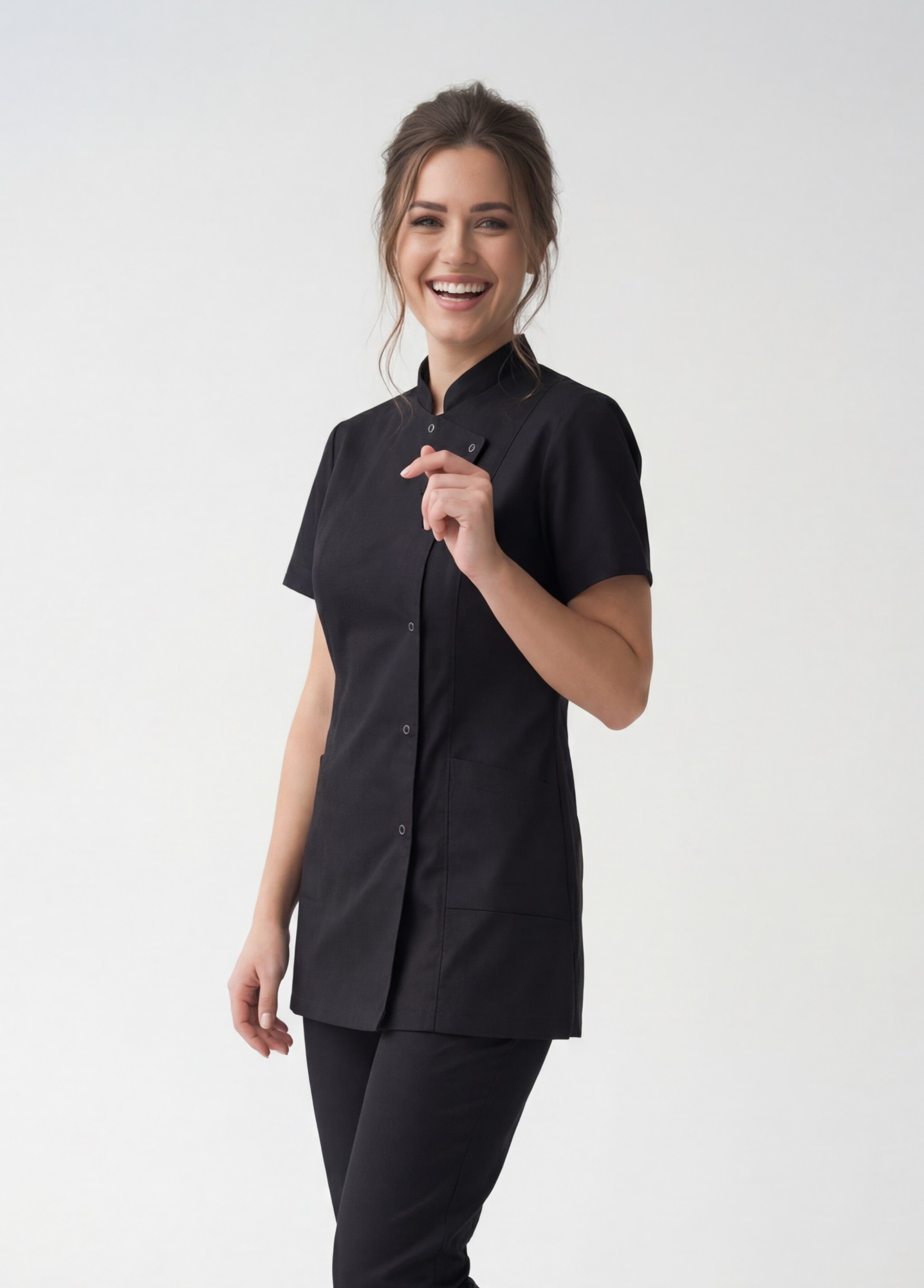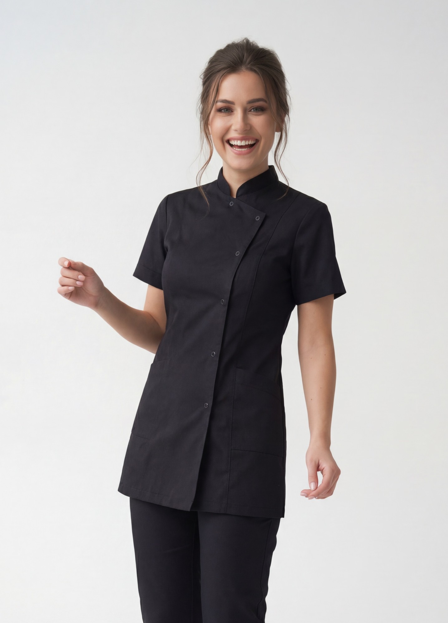 Ten model idealnie sprawdzi się w gabinetach kosmetycznych, klinikach urody, spa oraz w branży medycznej. To nie tylko uniform – to element wizerunku, który buduje zaufanie i prestiż.