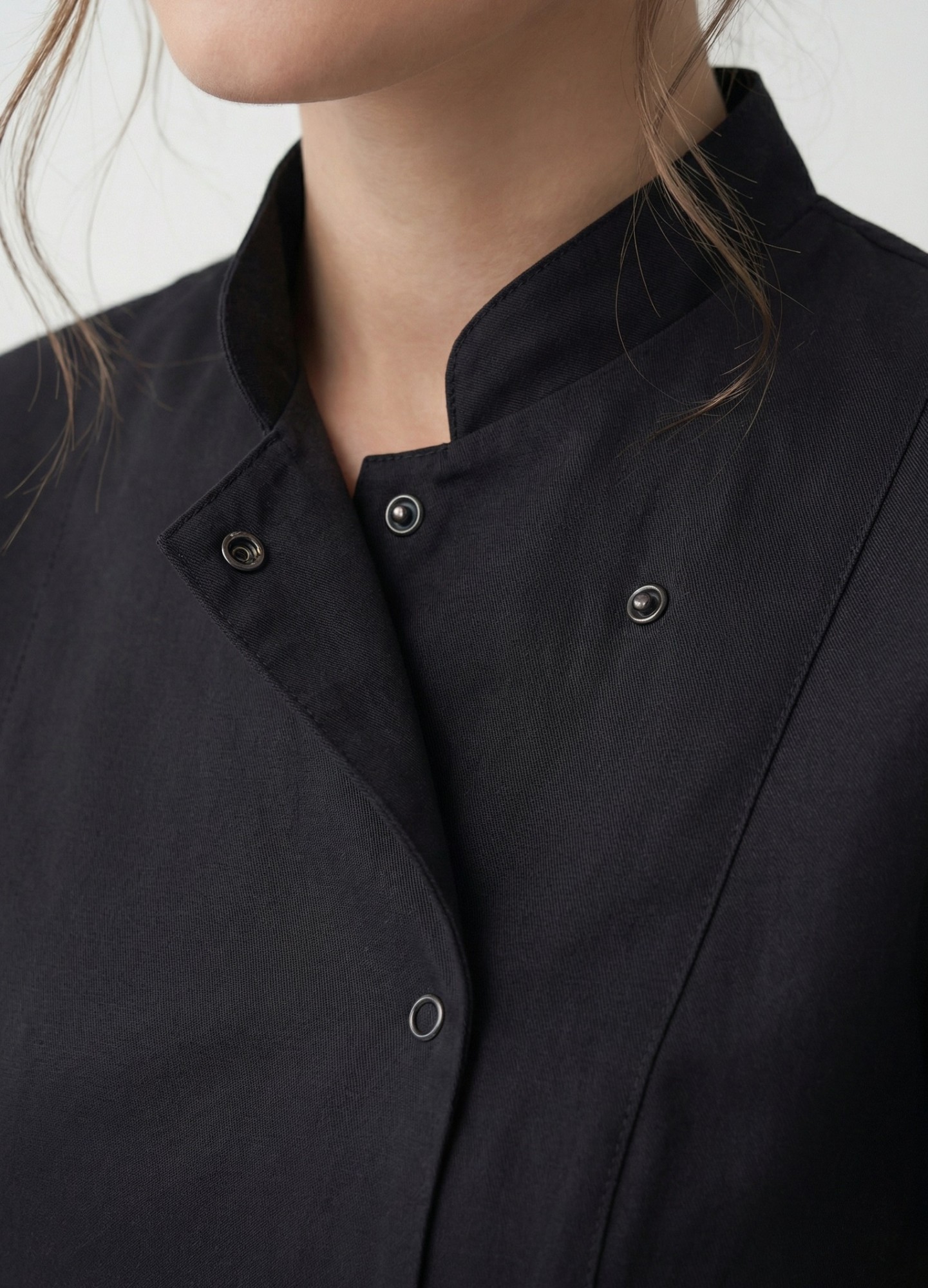 Model ze stójką, zapinany na praktyczne zatrzaski, zachwyca dopracowanym krojem – delikatnie taliowany, pięknie układa się na sylwetce, nie opinając jej, a jednocześnie subtelnie podkreśla kobiece kształty. Fartuszek posiada wygodne rękawki, które nie ograniczają ruchów podczas wykonywania zabiegów, co zapewnia maksymalny komfort nawet przez cały dzień pracy. Boczne zapięcie nadaje całości nowoczesnego i szykownego wyglądu. Praktyczne detale, takie jak dwie boczne kieszenie sprawiają, że najpotrzebniejsze akcesoria masz zawsze pod ręką.