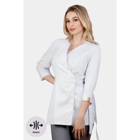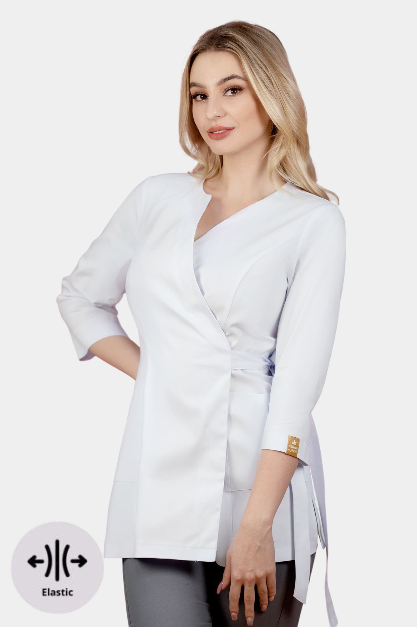 Najnowszy fartuszek kosmetyczny w wersji wiązanej, to propozycja zarówno dla gabinetów kosmetycznych jak i medycznych. Dekolt w literkę V sprawia, że fartuszek optycznie podkreśla i wydłuża szyję. Wygodne rękawki nie krępują ruchów podczas wykonywanych zabiegów. Ten nowoczesny fartuch kosmetyczny posiada także pojemne i bardzo praktyczne podczas pracy kieszonki. Uniform medyczny dzięki swojemu, kopertowemu krojowi jest bardzo praktyczy. Uniform jest idealnie taliowany i zgrabny przez co wysmukla kobiecą sylwetkę. Dzięki wiązaniu w pasie możesz go dopasować do swojej sylwetki. Przepięknie dopasowuje się do każdej figury. Odzież kosmetyczna ma duży wpływ na profesjonalny odbiór Twojego salonu i gabinetu, więc nie zwlekaj i bądź Królową w pracy! :)