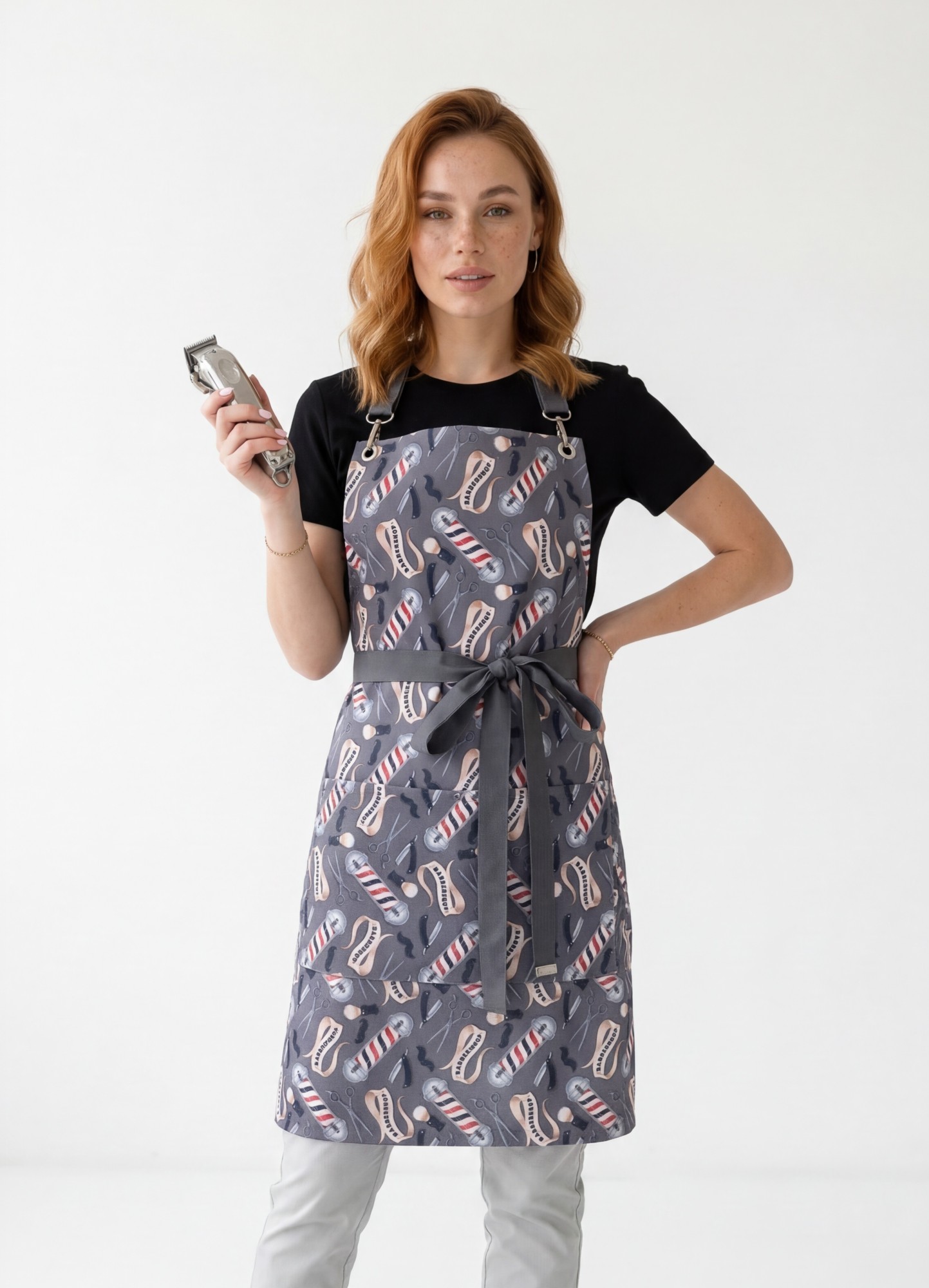 Fartuszek regulowany na szyi i wiązany wokół talii. Grubsze troczki pozwalają zawiązać przepiękną kokardke z przodu lub z tyłu.
