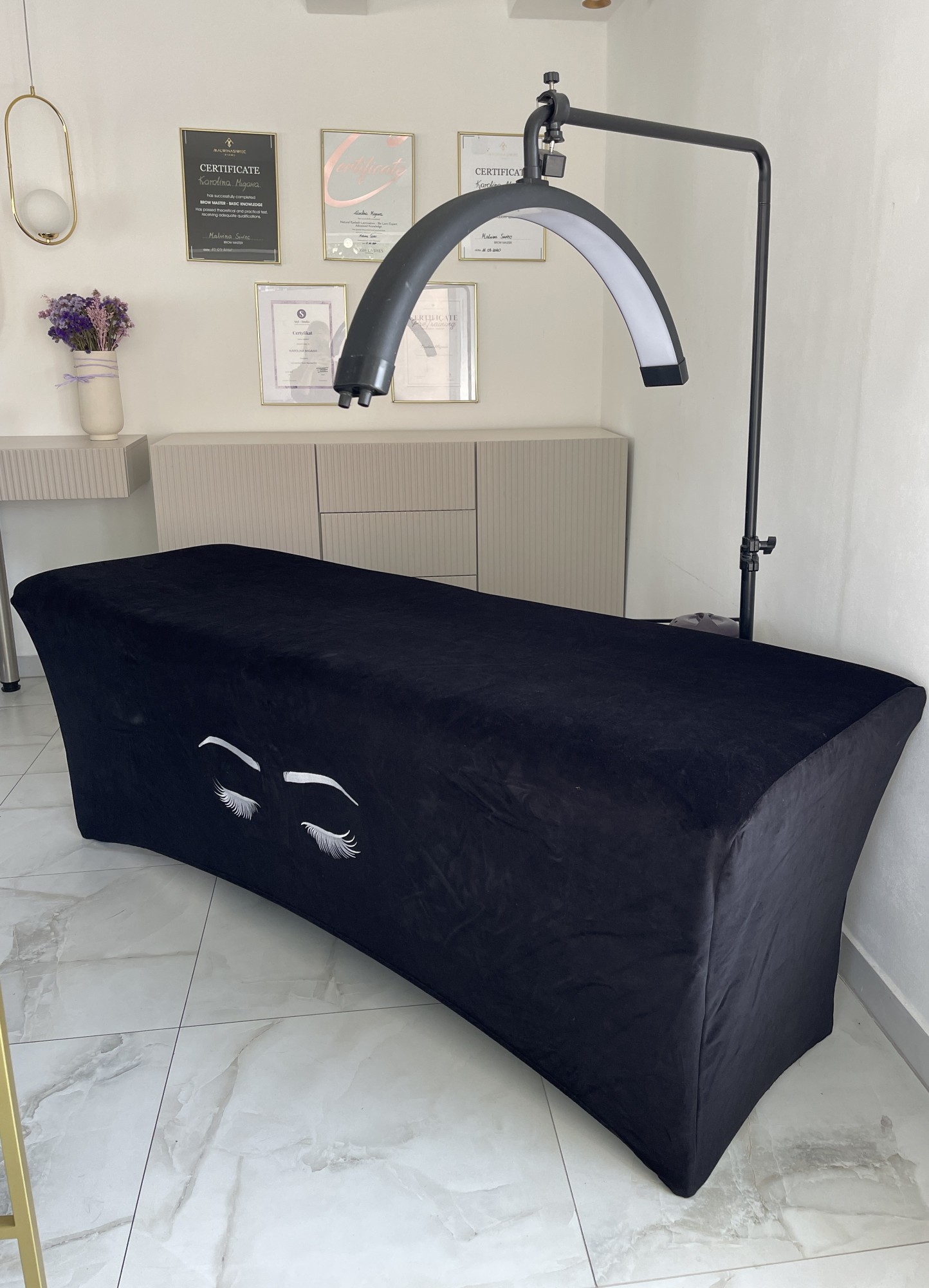 Pokrowiec na łóżko kosmetyczne z wycięciem na nogi. Zaprojektowany z myślą o stylistkach rzęs, brwi i lingeristkach. Wycięcie na nogi sprawia, że praca staje się wygodniejsza.Prześcieradło kosmetyczne wykonane jest z wysokiej jakości weluru tak jak nasze inne dodatki. Dzięki wzmocnionym tunelom na nogi pokrowiec nie będzie się przesuwał. Dodatkowe gumki na brzegach sprawiają, że pokrowiec idealnie się układa i nie faluje :) Jeśli potrzebujesz do kompletu poszewkę na materac anatomiczny znajdziesz go tutaj KLIK :) Cały komplet sprawi, że Twój salon będzie wygladał dużo bardziej profesjonlanie i Twoje stanowisko pracy będzie cieszyć oko :)