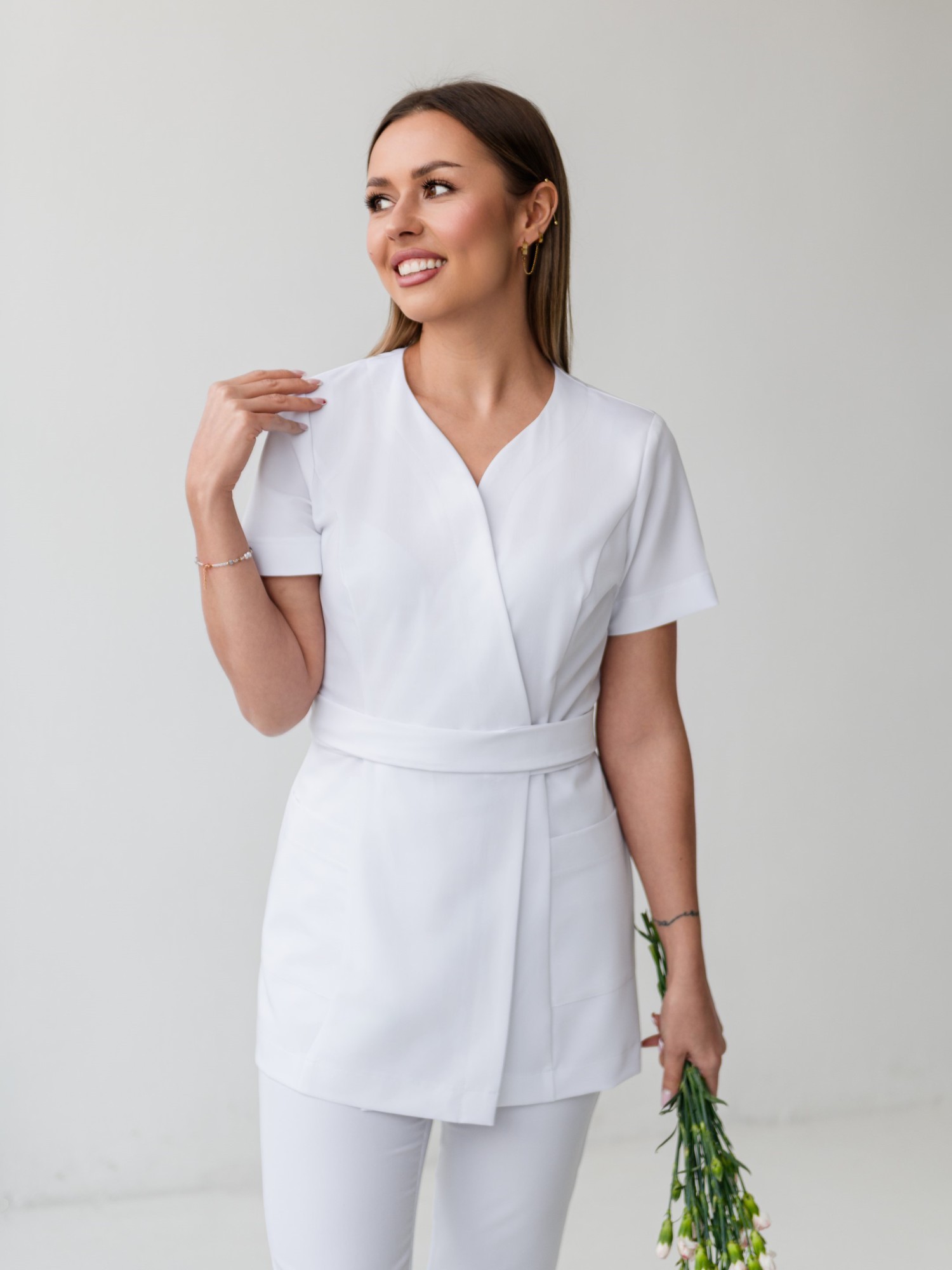 Wyjątkowy elastyczny uniform. Mieszanka w poliestru, wiskozy i elastanu to niezwykle praktyczna i wyjątkowa tkanina, której nie będziesz chciała z siebie zdjąć :)